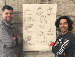 - They were struggling with two big distributed teams, not relating and collaborating that well; both due to distance and culture.